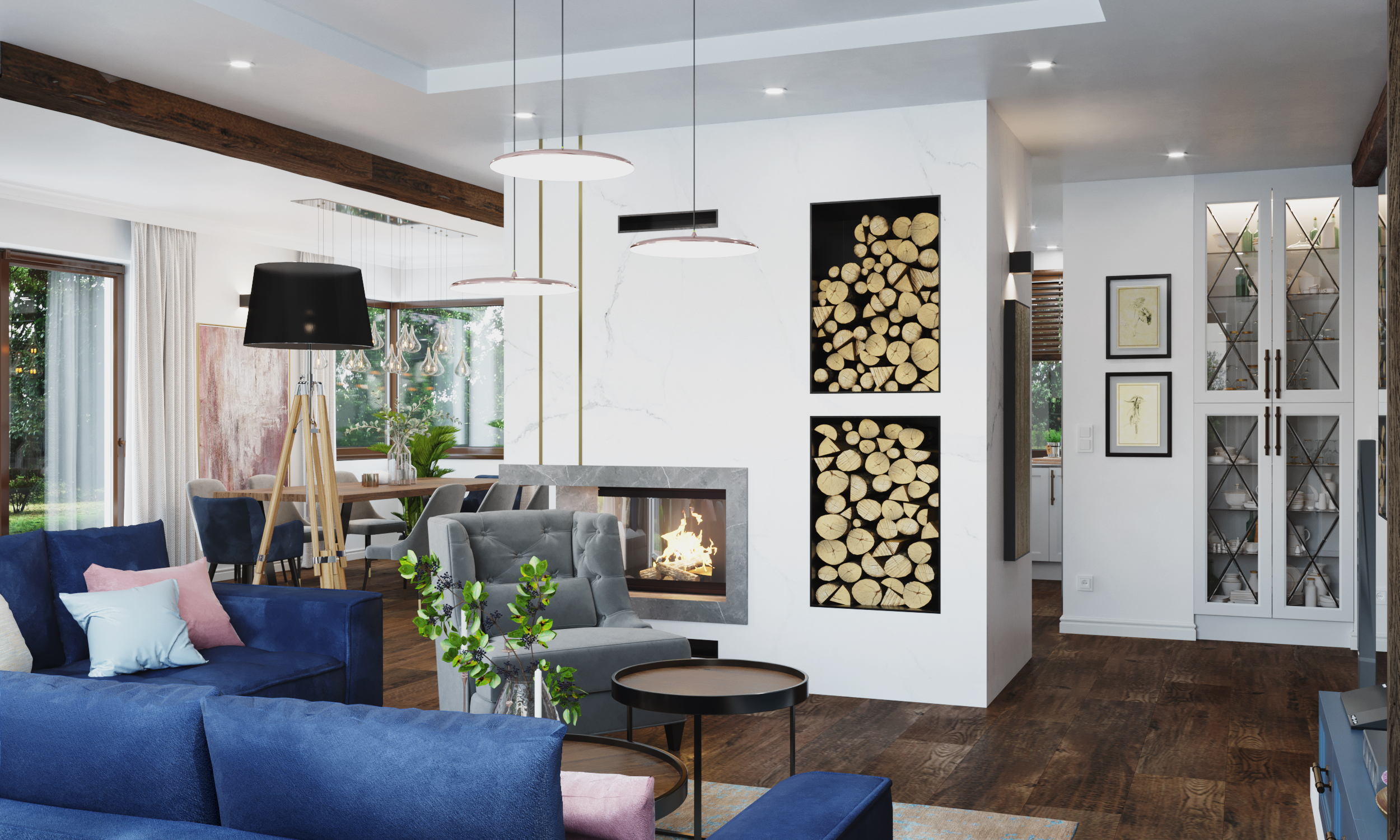Dom w Ramiszowie to projekt stworzony z myślą o rodzinie, która ceni sobie wysoką jakość, eleganckie wnętrza i indywidualne rozwiązania. Projekt wnętrz wyróżnia się harmonijnym połączeniem komfortu i stylu, gdzie każdy detal został dopracowany i wykonany z materiałów najwyższej klasy.