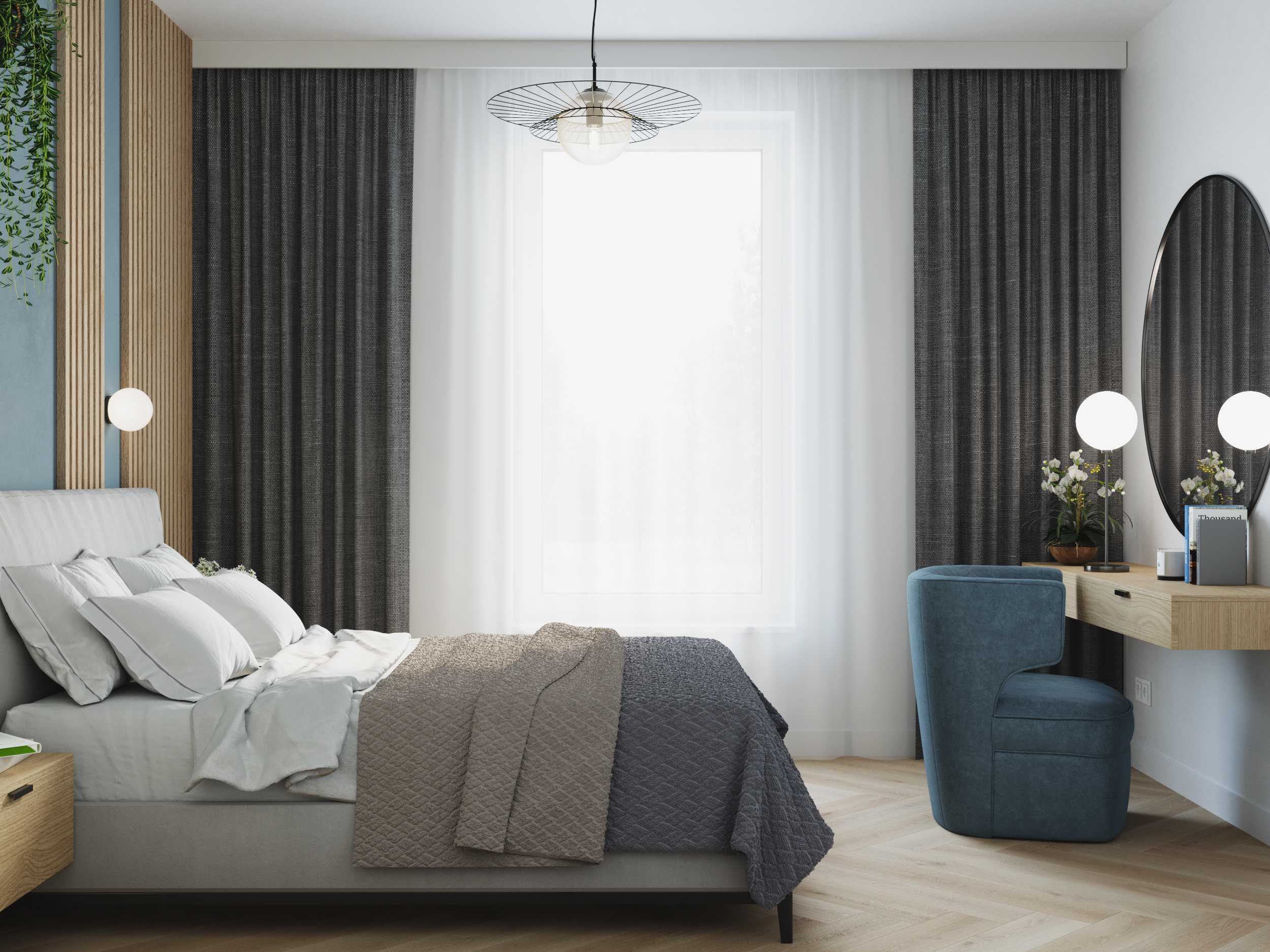 Wnętrze zostało dopracowane w każdym detalu – od starannie dobranych wykończeń, przez faktury i kolory, aż po eleganckie dodatki. To przykład aranżacji mieszkania we Wrocławiu, w której naturalne materiały spotykają się z nowoczesnym designem, tworząc wyjątkowy klimat rodzinnego domu.