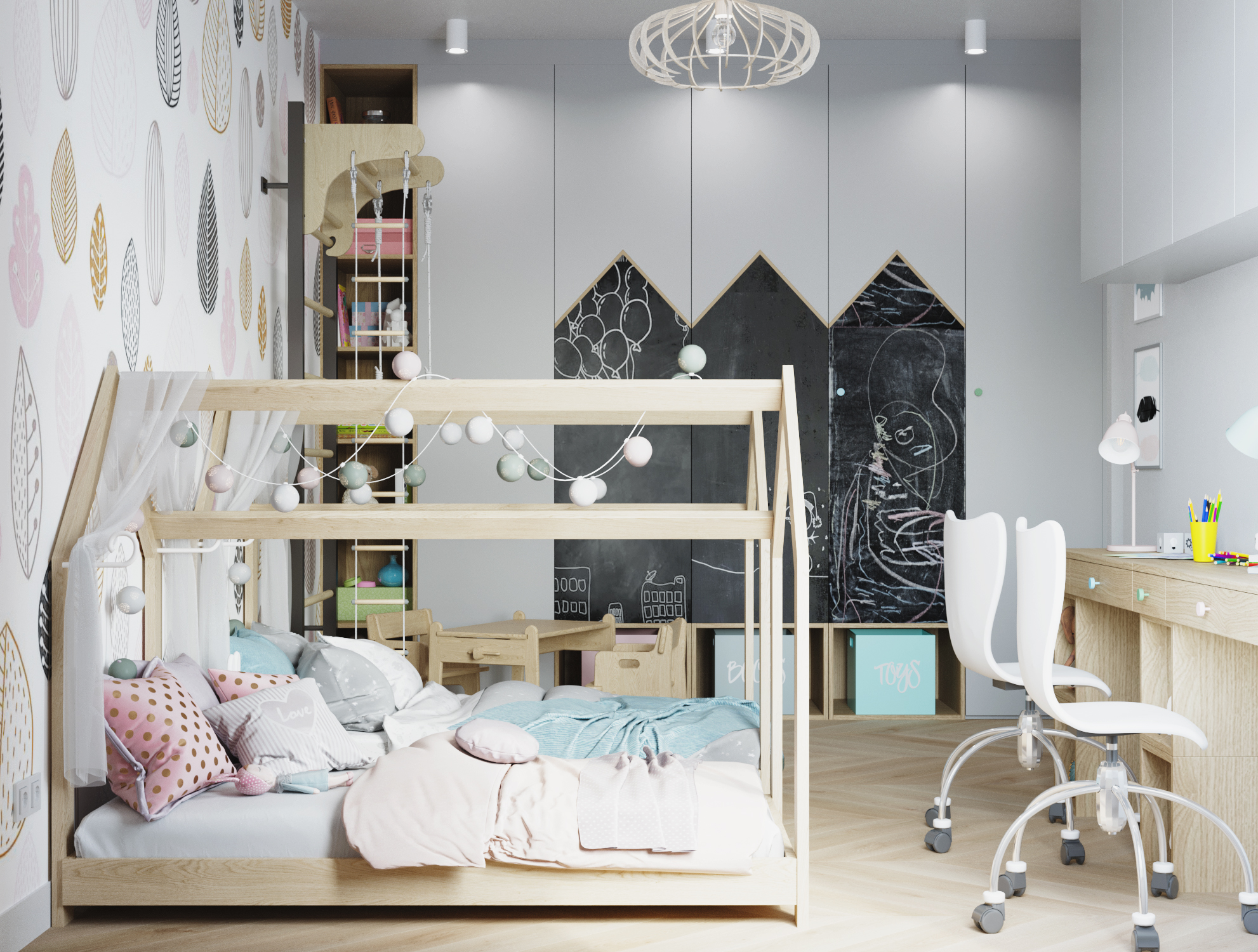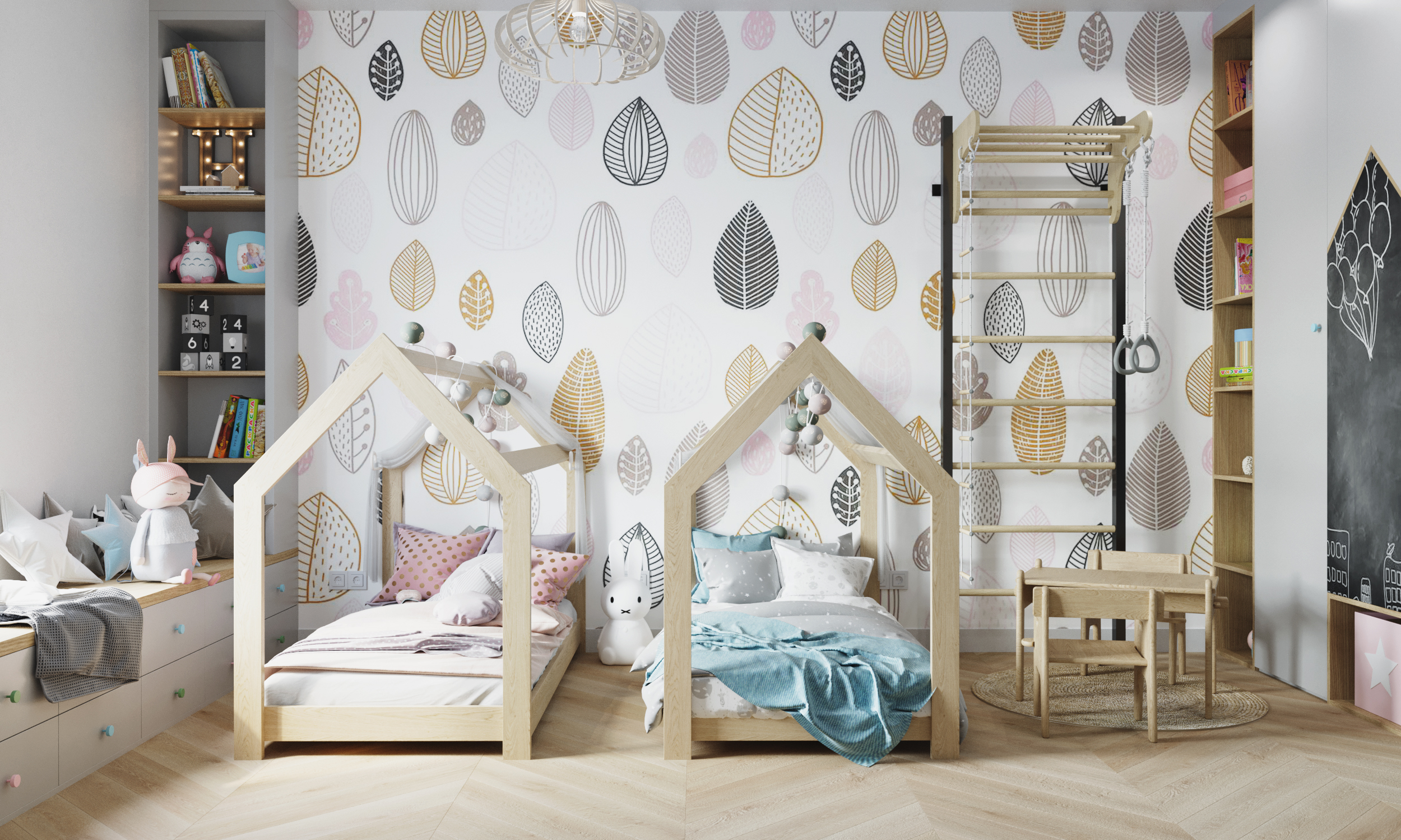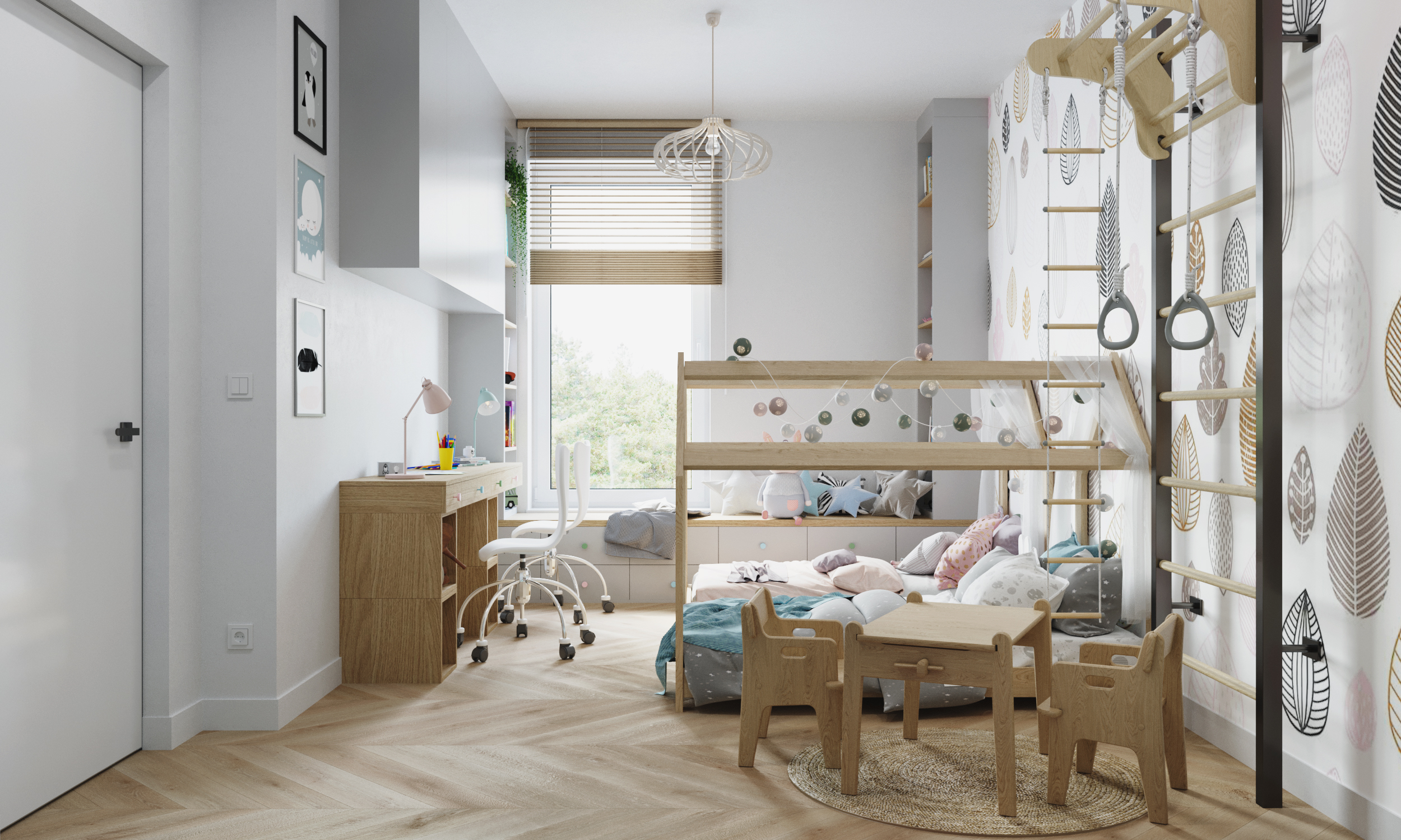 Salon z kuchnią i jadalnią stanowi serce domu – przestrzeń otwartą, jasną i pełną życia. W projekcie znalazło się również miejsce na wygodne sypialnie, funkcjonalne łazienki i przestrzeń dla dzieci, co sprawia, że całość jest idealnie dopasowana do potrzeb rodziny.