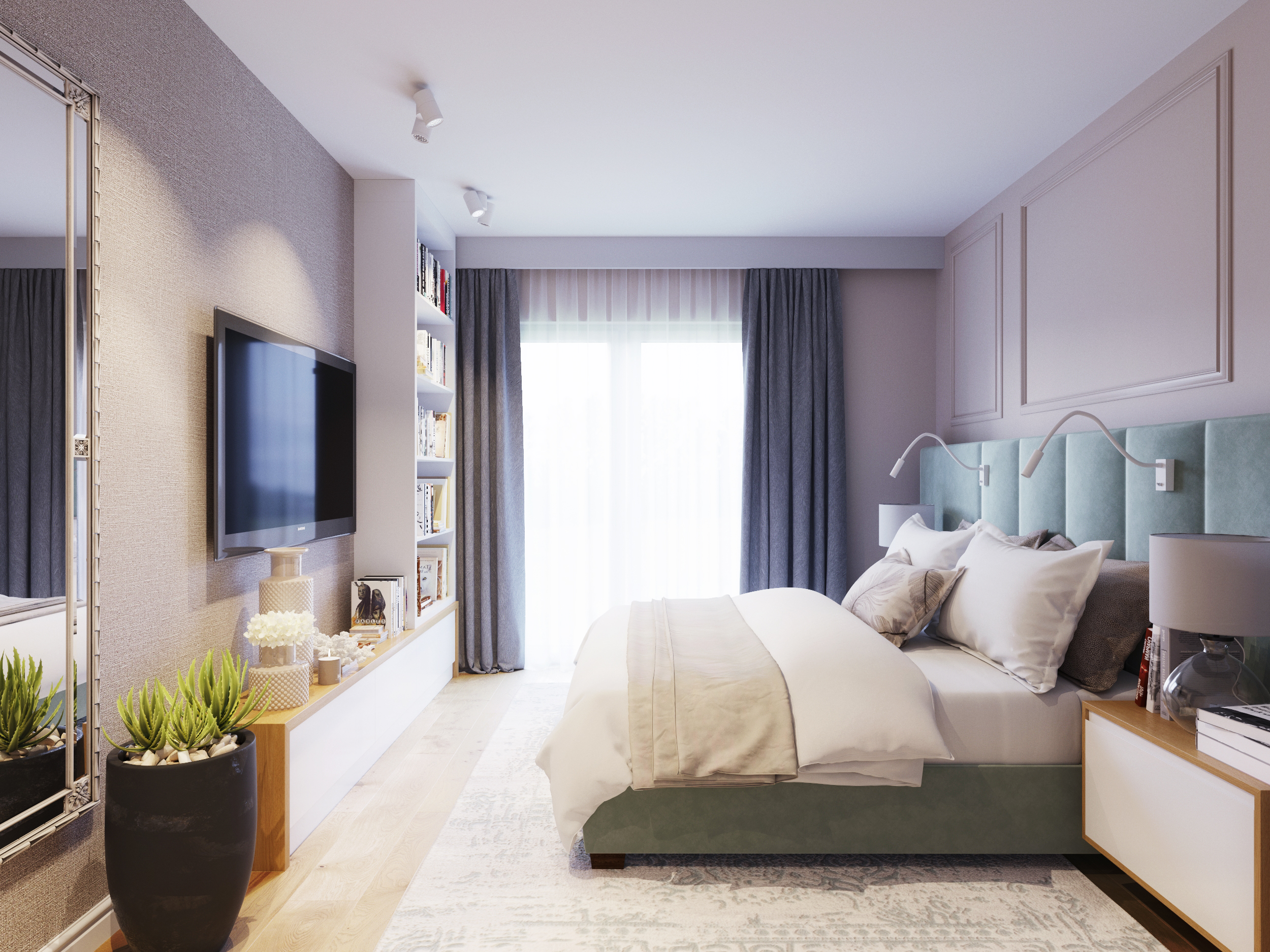 Obok przestronnego salonu z kuchnią i jadalnią, w apartamencie znalazła się luksusowa sypialnia, która została zaprojektowana jako miejsce wyciszenia i regeneracji. Miękka pościel, subtelne oświetlenie i klasyczne detale tworzą przestrzeń sprzyjającą całkowitej regeneracji. Dodatkowy pokój to funkcjonalna przestrzeń, która może pełnić zarówno rolę domowego biura, jak i eleganckiego pokoju dla gości. To rozwiązanie idealnie wpisuje się w potrzeby najemców ceniących elastyczność i styl.
